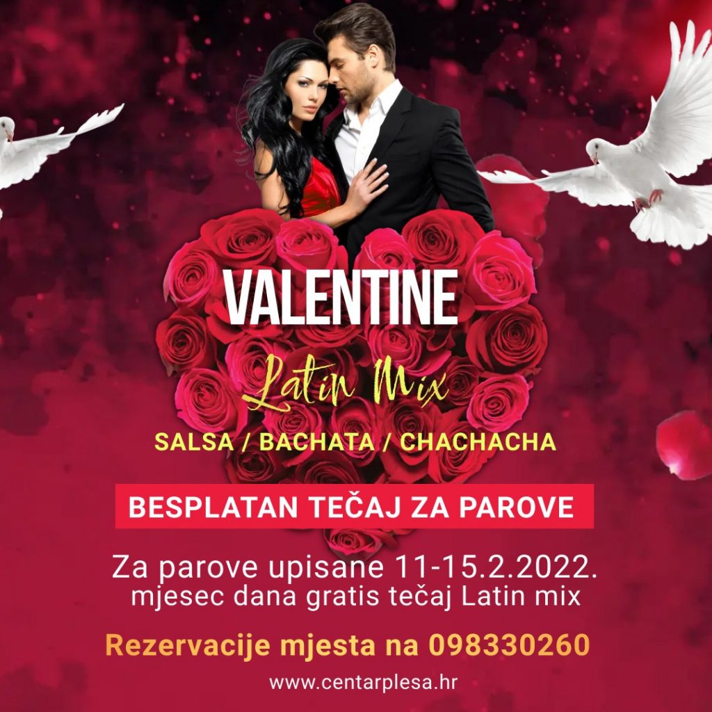 Valentinovo u Centru plesa velj 11, 2022 petra Novosti 0 Donesite najbolju odluku za Valentinovo – zaljubite se u ples💃🕺🏻 Svim parovima prijavljenima u periodu od 11.02.2022. do 15.02.2022. poklanjamo mjesec dana besplatno tečaj Latin mix, Salsa, Bachata, Chachacha Termini: utorak/četvrtak 20h Lokacija: R. Boskovića 18, Split3 Prijave na: 098330260 PODIJELITE Facebook Email Prethodni postSljedeći post Post by petra Comments are closed.